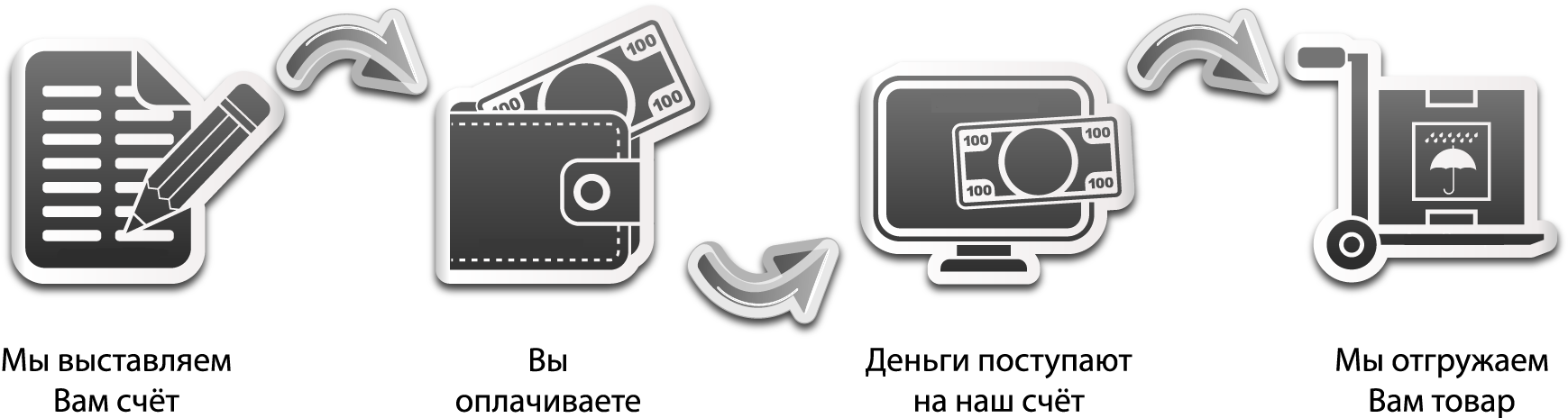 Безналичный расчёт возможен как для юридических, так и для физических лиц. Оплата производится на расчётный счёт компании, на основании сформированного счёта.